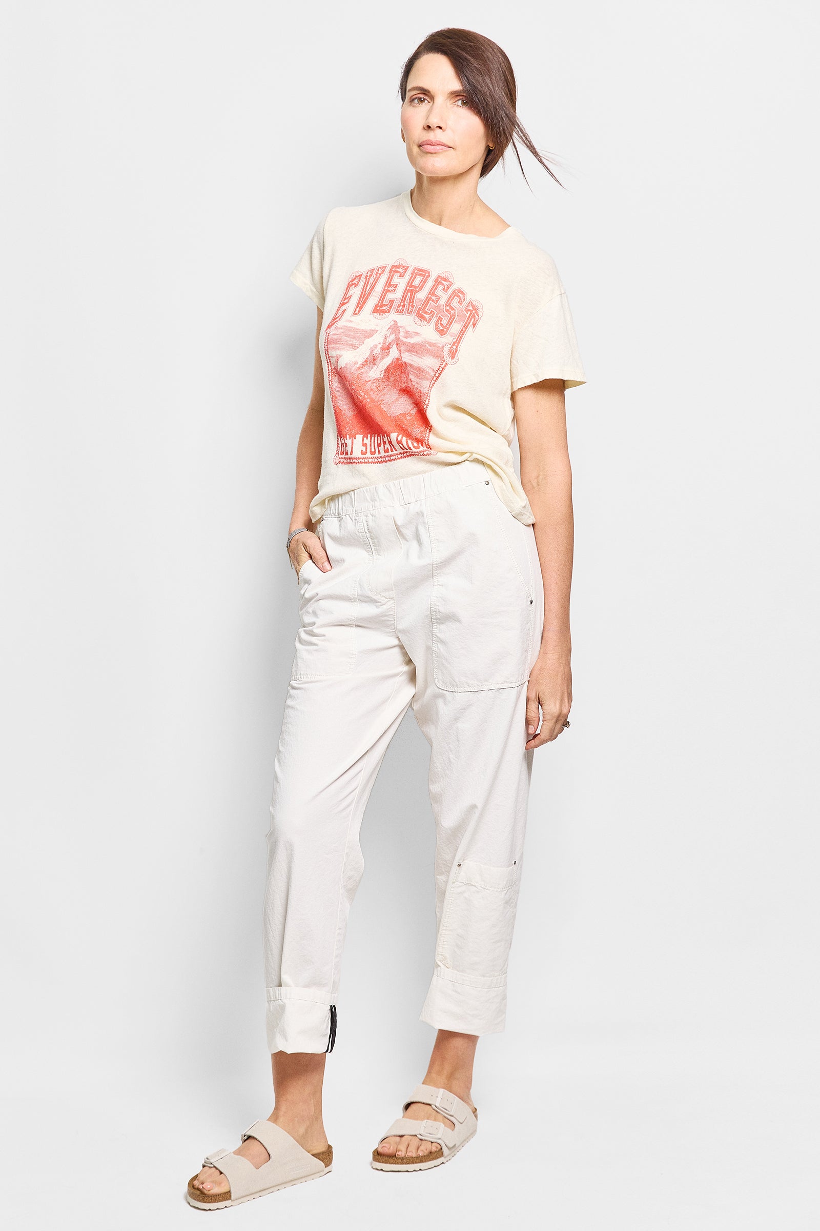 the best travel pant. dax features a flat front and elastic back for an easy fit. cut in a super lightweight cotton, elastane and nylon blend. can be worn full length or cropped by rolling the hem and showing the inside seam detail. best details: deep pockets and contrast topstitching. the bio wash process makes the fabric even softer and is a good option for people with sensitive skin. true to size. size up for a baggy fit. size down for a slim fit.