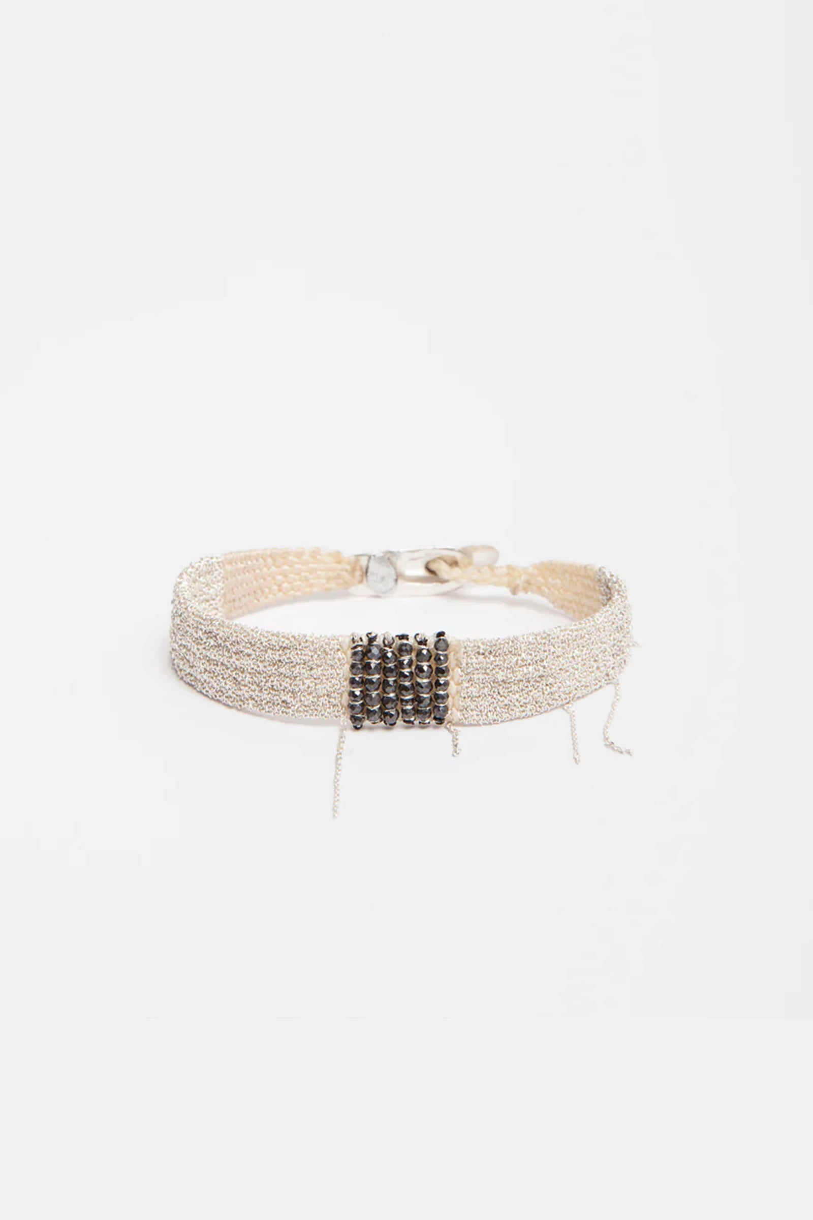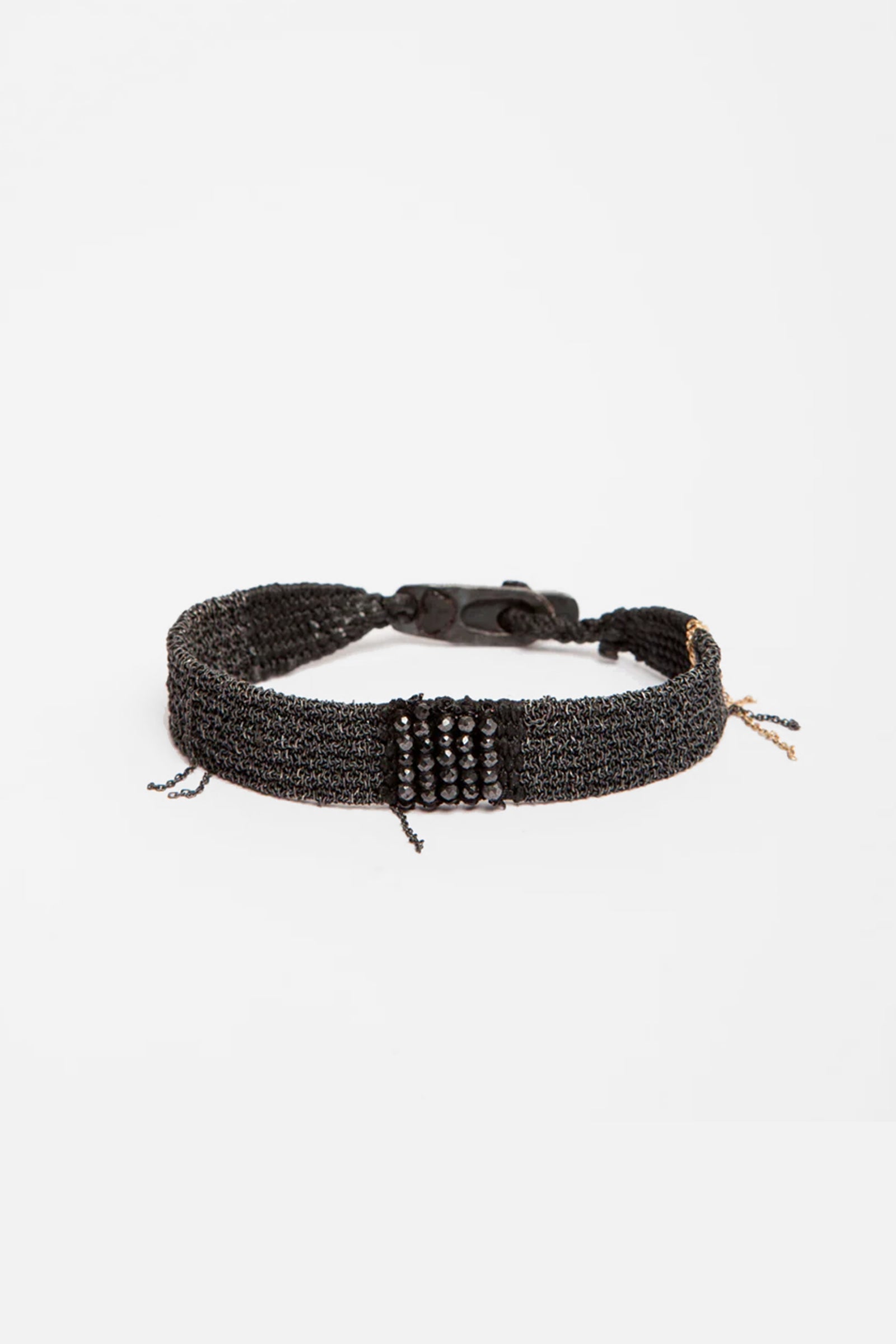 katia alpha's black diamonds bracelet features a collection of black diamonds woven into waved thread and finished with a sterling silver clasp. all katia alpha pieces are hand made with the upmost care. take special care when handling. find out more
