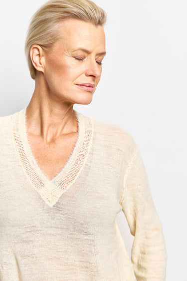 earl is a play on texture, a featherweight knit composed of different knit structures. the yarn is a mix of cotton, linen & recycled polyester which gives the knit it’s stability. sized 2 ways: smallish & largish.