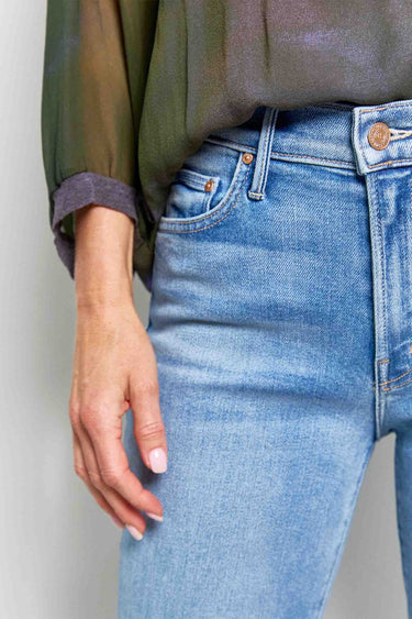 how you doing? narrow flare jeans with a mid rise and a long 32-inch inseam with a clean hem. made from denim with a touch of stretch, 'full moon' is a mid-blue wash with whiskering and fading at the knees.