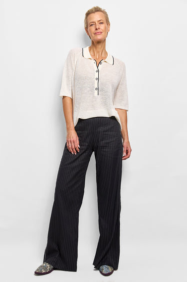 this is the easiest pant. pull on, set & forget. cut in a lightweight stretch linen blend featuring a contrast stitch detail on the side panel. there are no front pockets as we like to keep the front smooth. we have washed this pant so no need to worry about shrinkage. true to size - they are a neat fit.