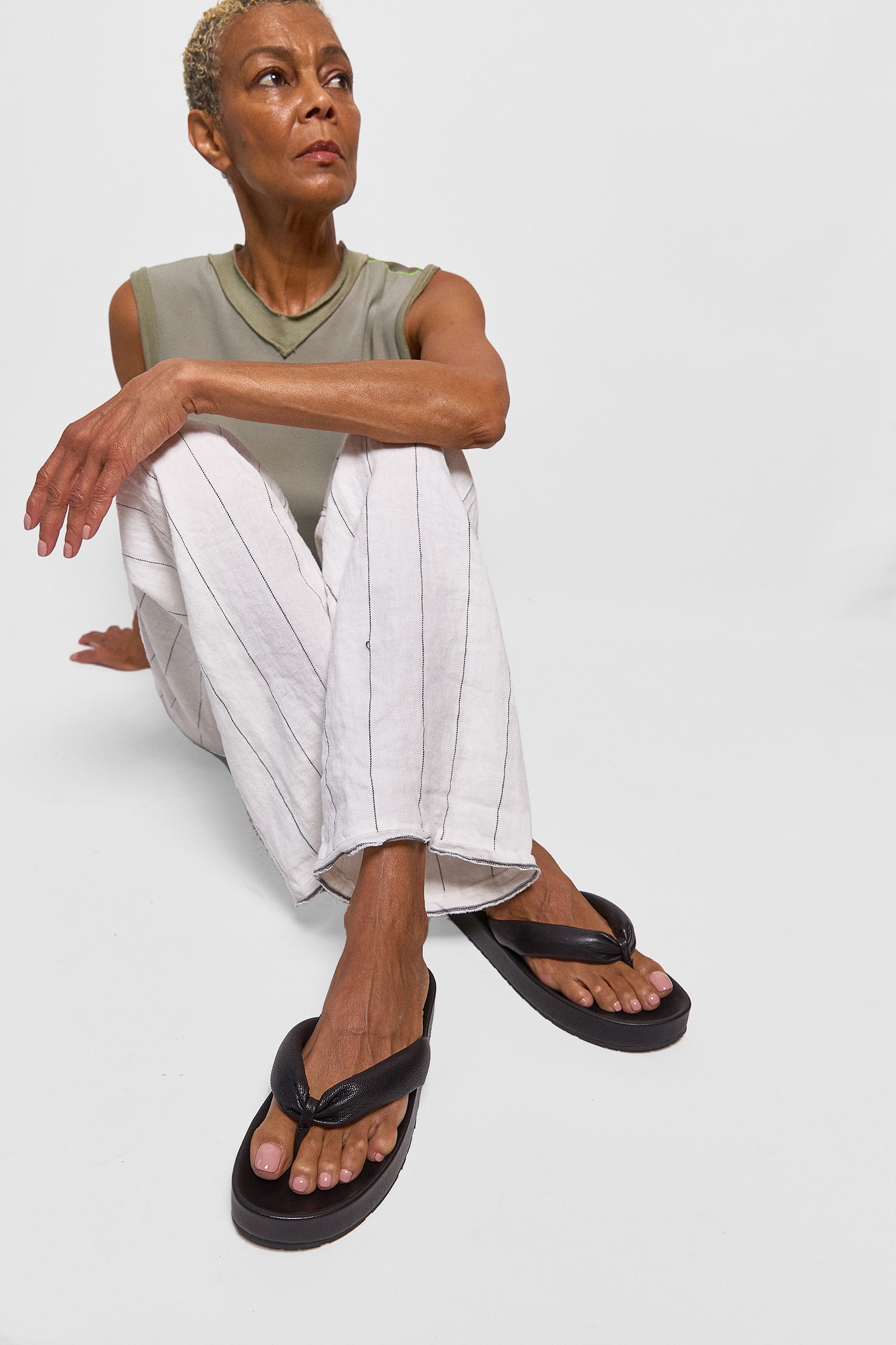 Pedro garcía's leather almu sandals are a sleek and modern flip-flop design. the slight platform gives these sandals superior comfort.