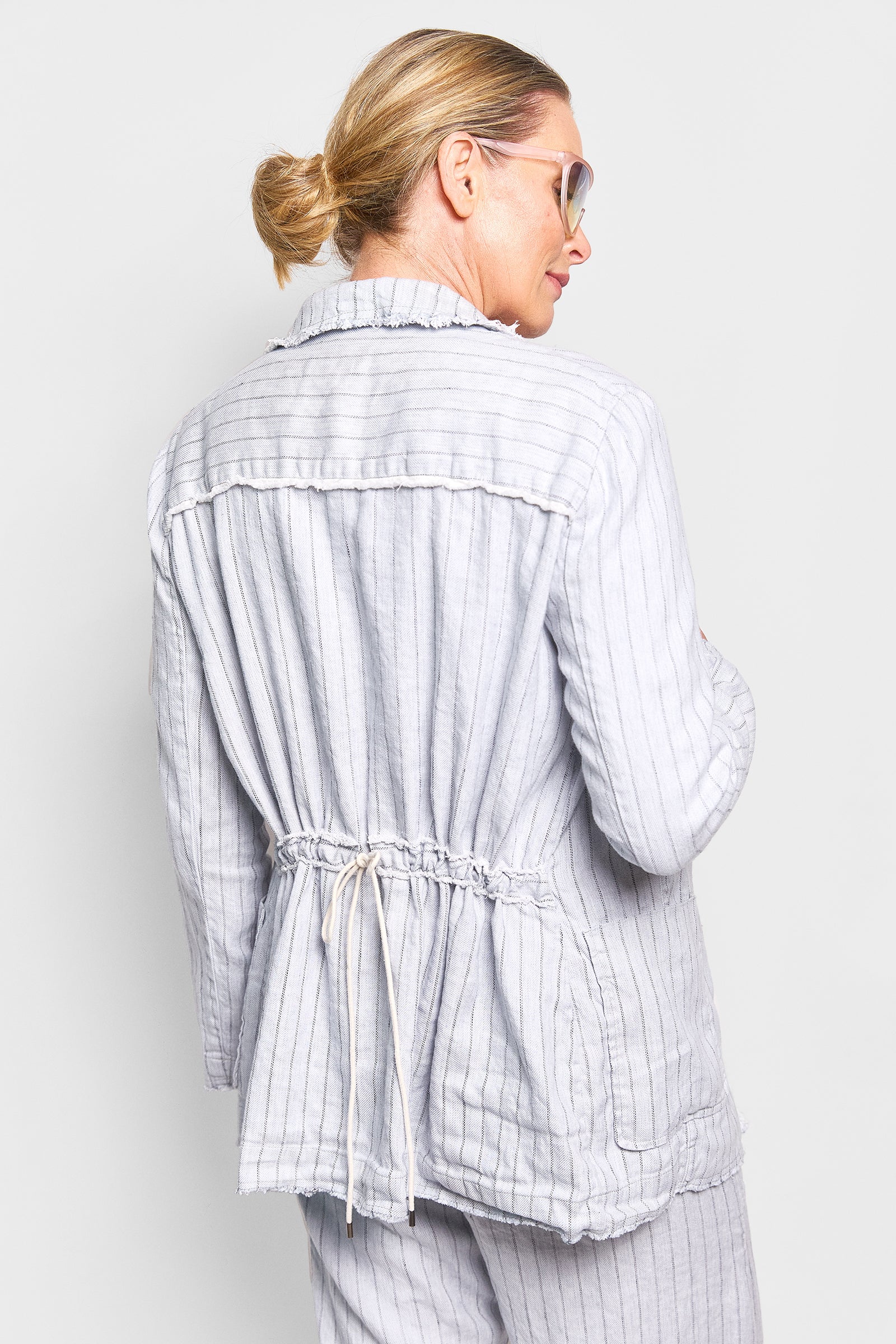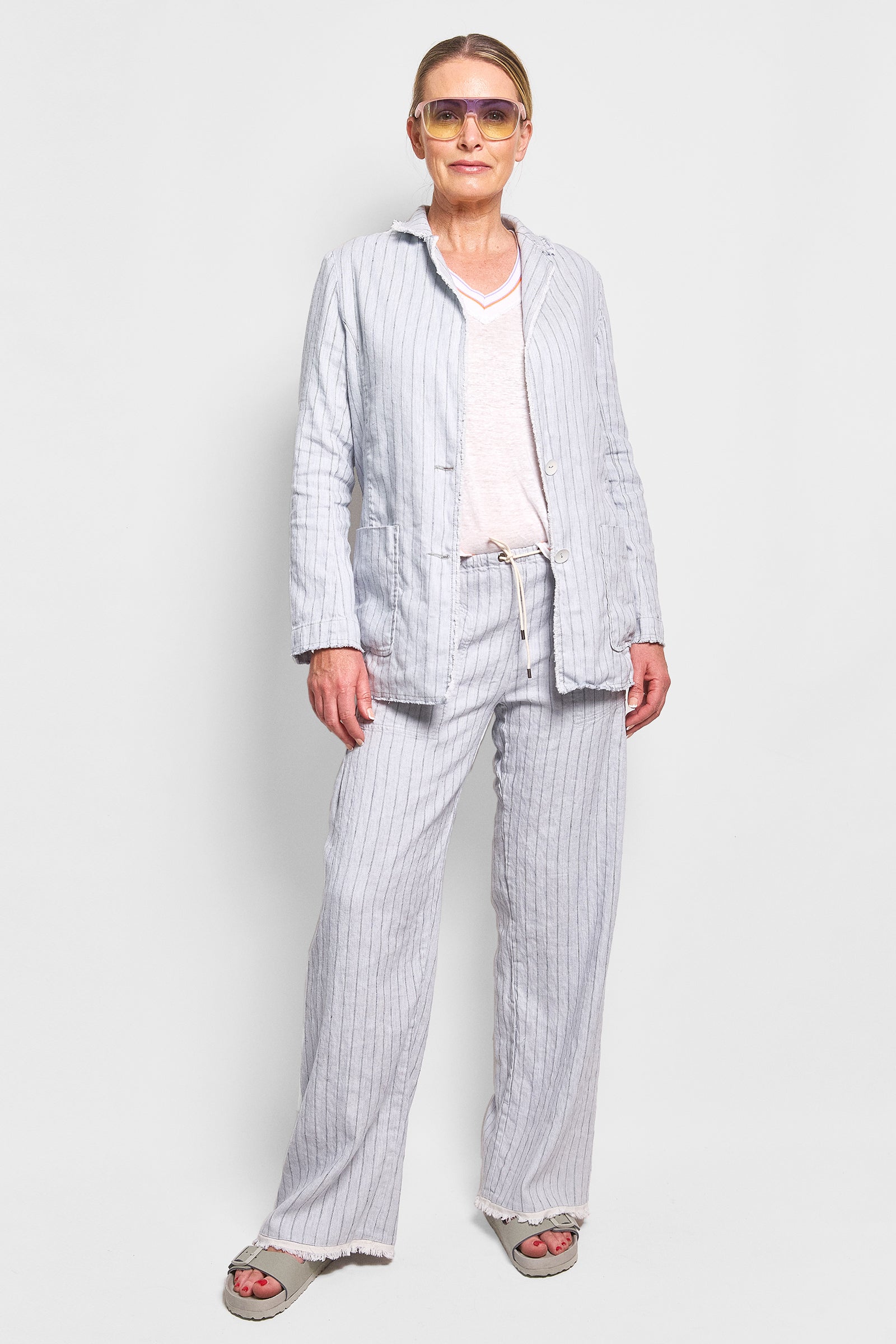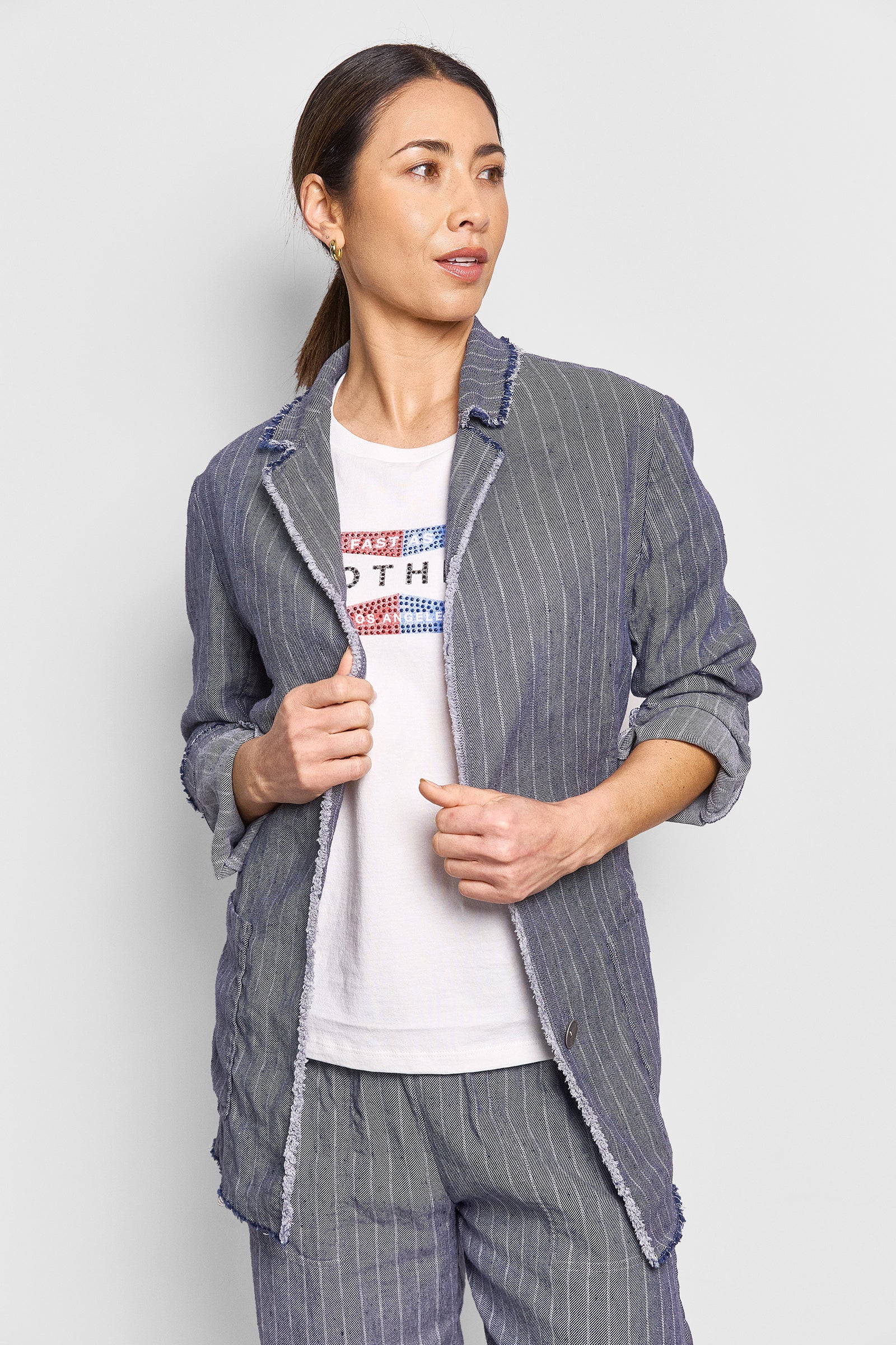 monty is an unlined, unstructured jacket is cut in 100% linen, very relaxed. lightweight and breathable, linen is the perfect fabric for the warmer months. we call it, soft tailoring. slightly oversized.