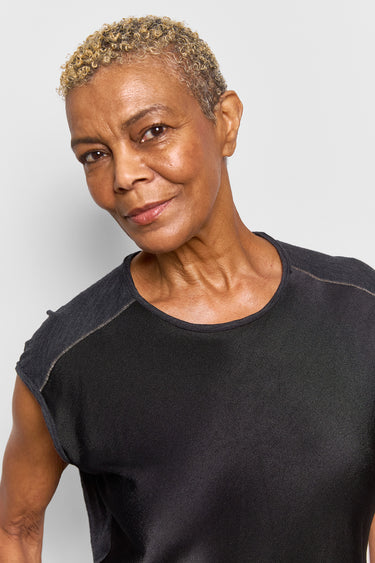 bias cut silk at the front, modal jersey at the back. a simple silk tee. true to size.