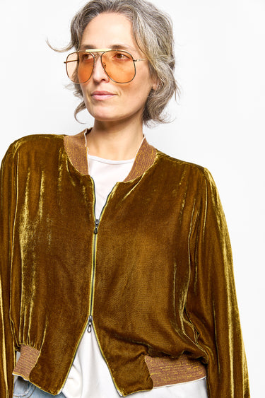 Our beautiful luca bomber jacket in silk/viscose velvet now featured in charcoal. luca features a jersey rib detailing with bold stripes, slight belle sleeves & a dual zipper. the perfect statement piece & transeasonal layer. our silk velvet has become a byfreer staple for its über soft feel & fluffy pile finish. we recommend a tumble dry when you wash for that extra shiny finish. relaxed fit.