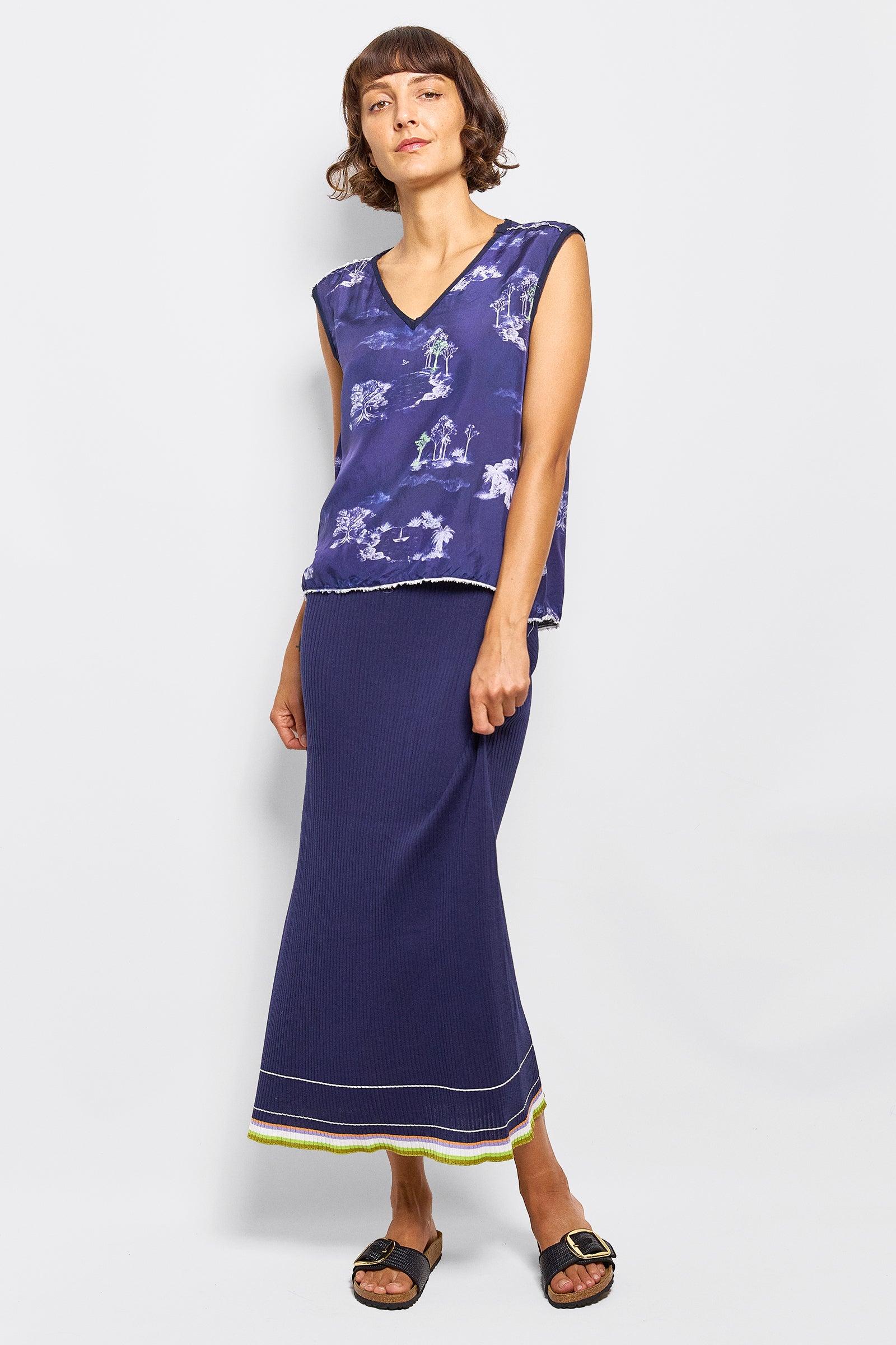 Roelene is 175cm and generally wears a size small, pictured in a small in navy toile.