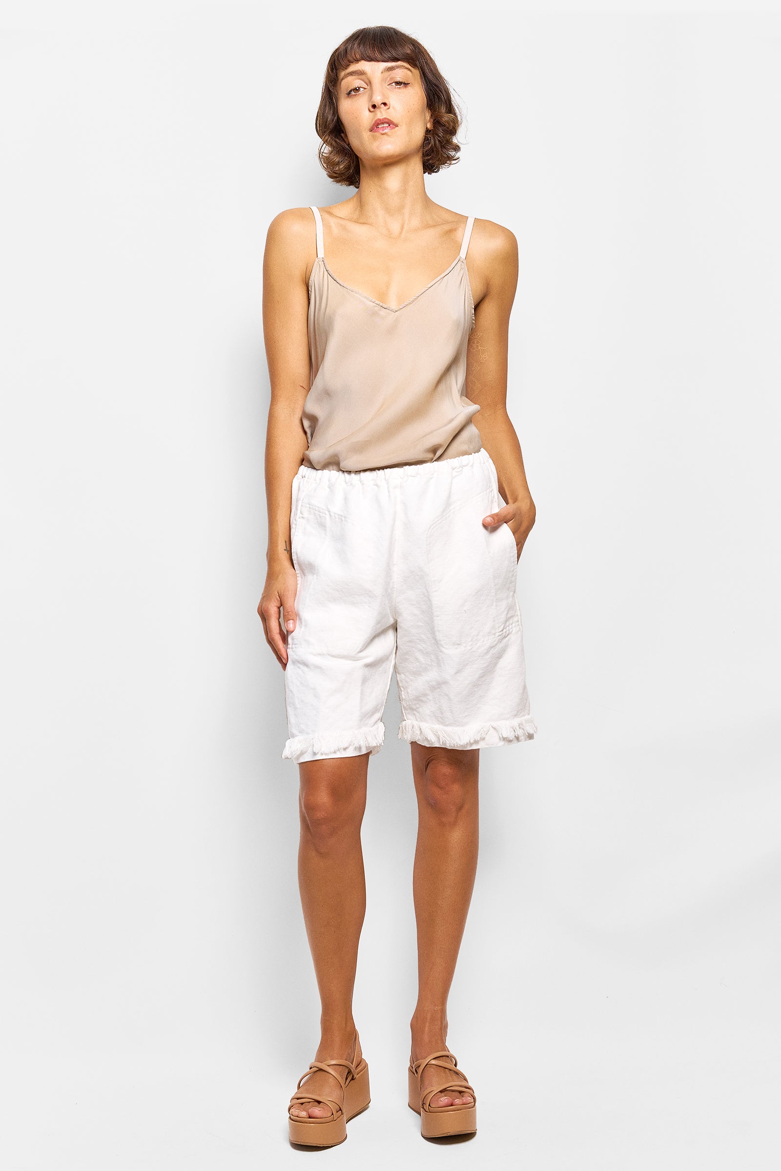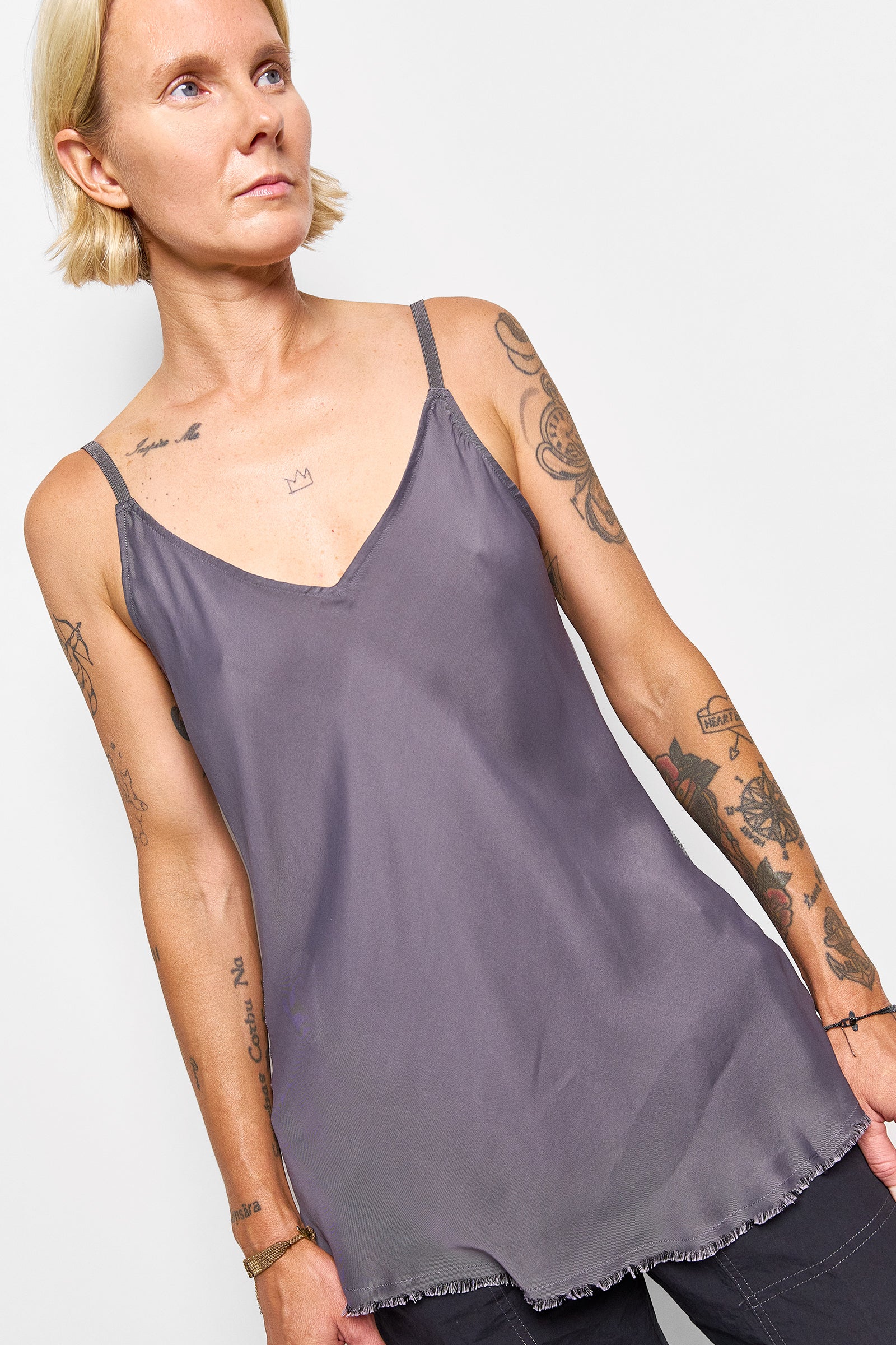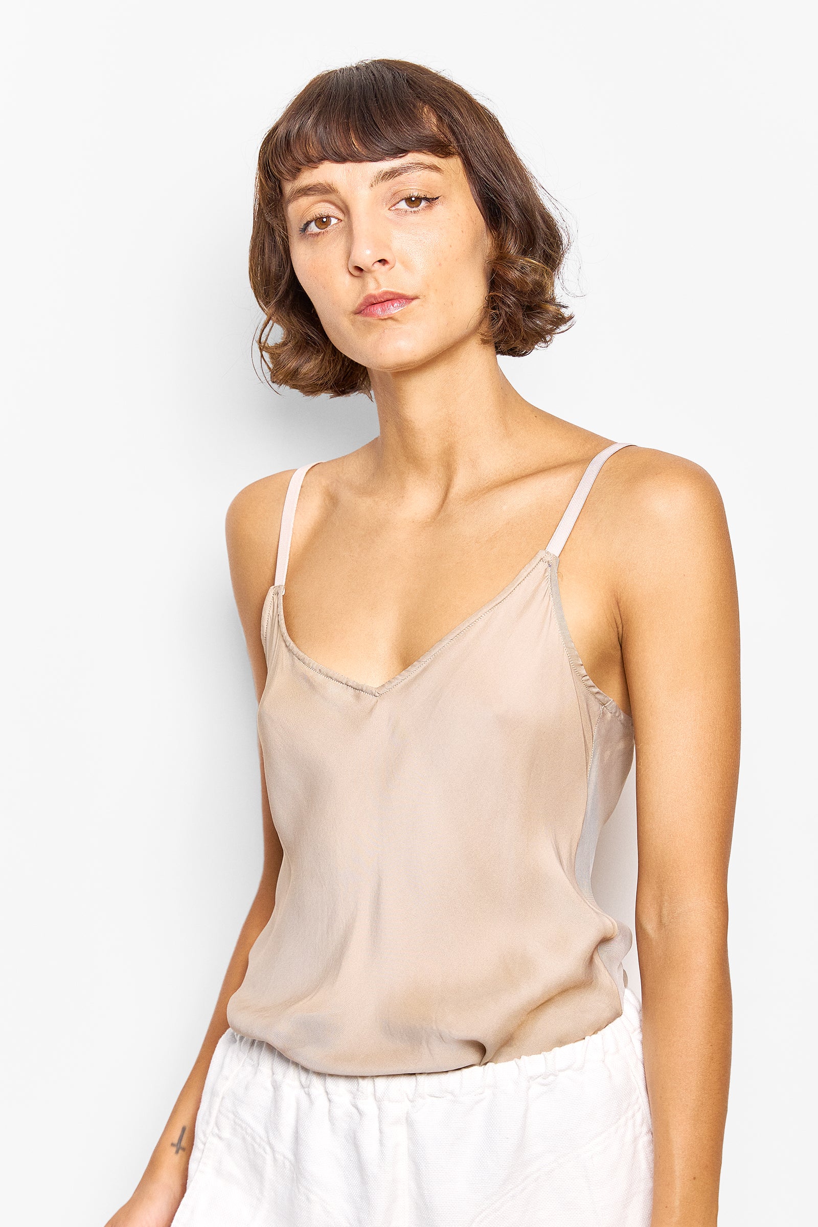 fleurette is a bias cut silk cami designed to wear as a layering piece or on its own. the twill weave silk viscose gives this cami a two-tone effect. true to size.