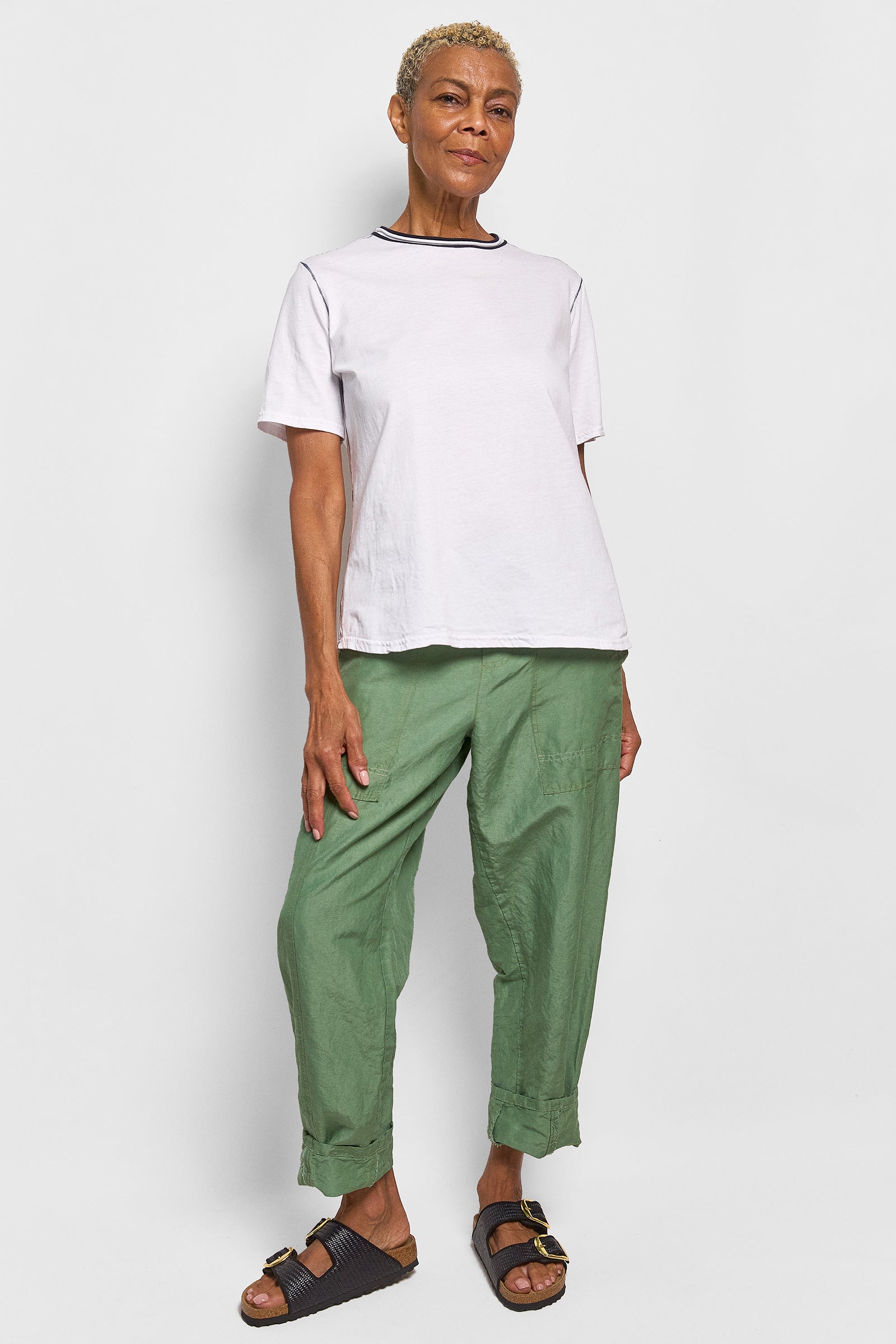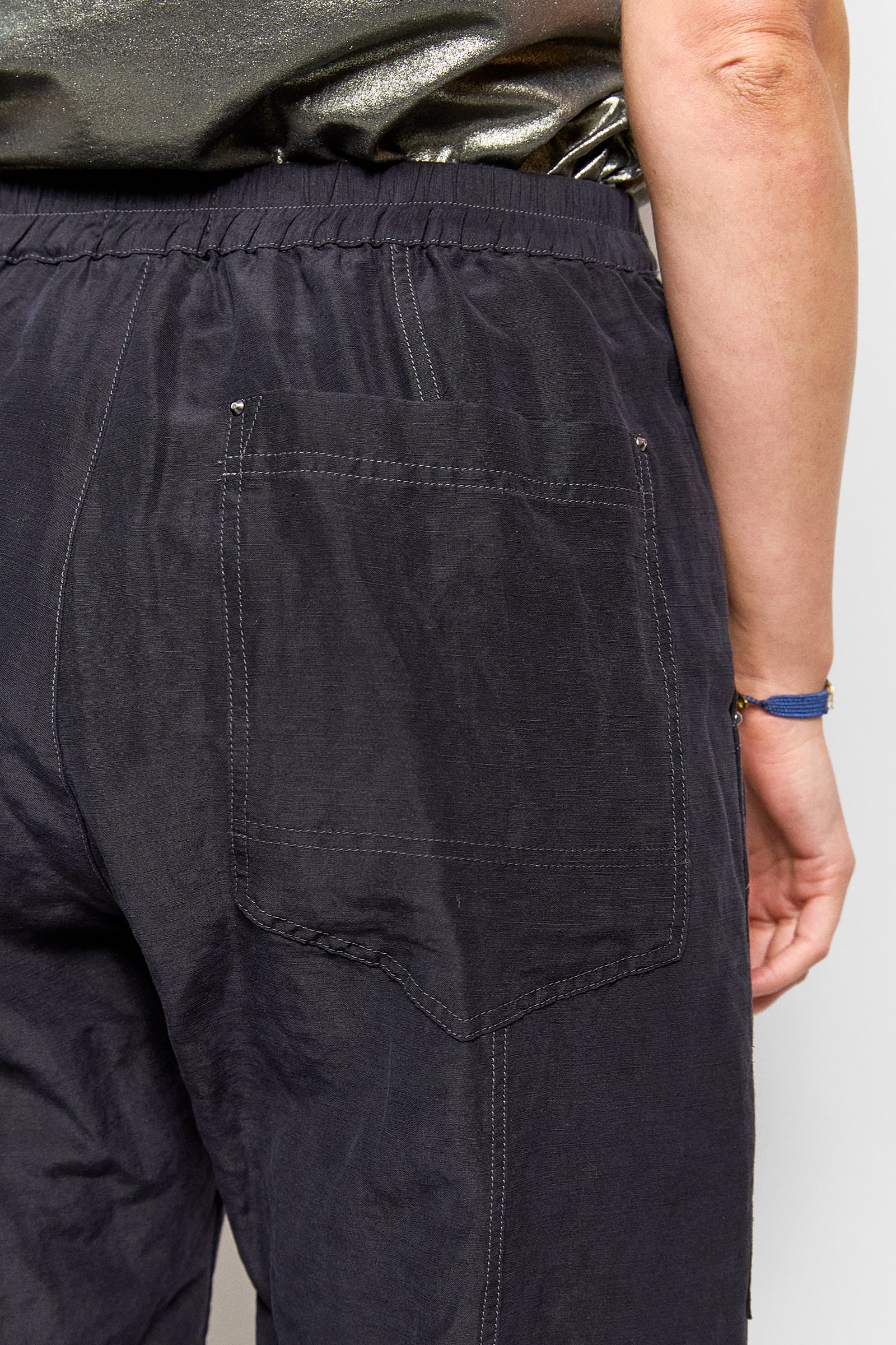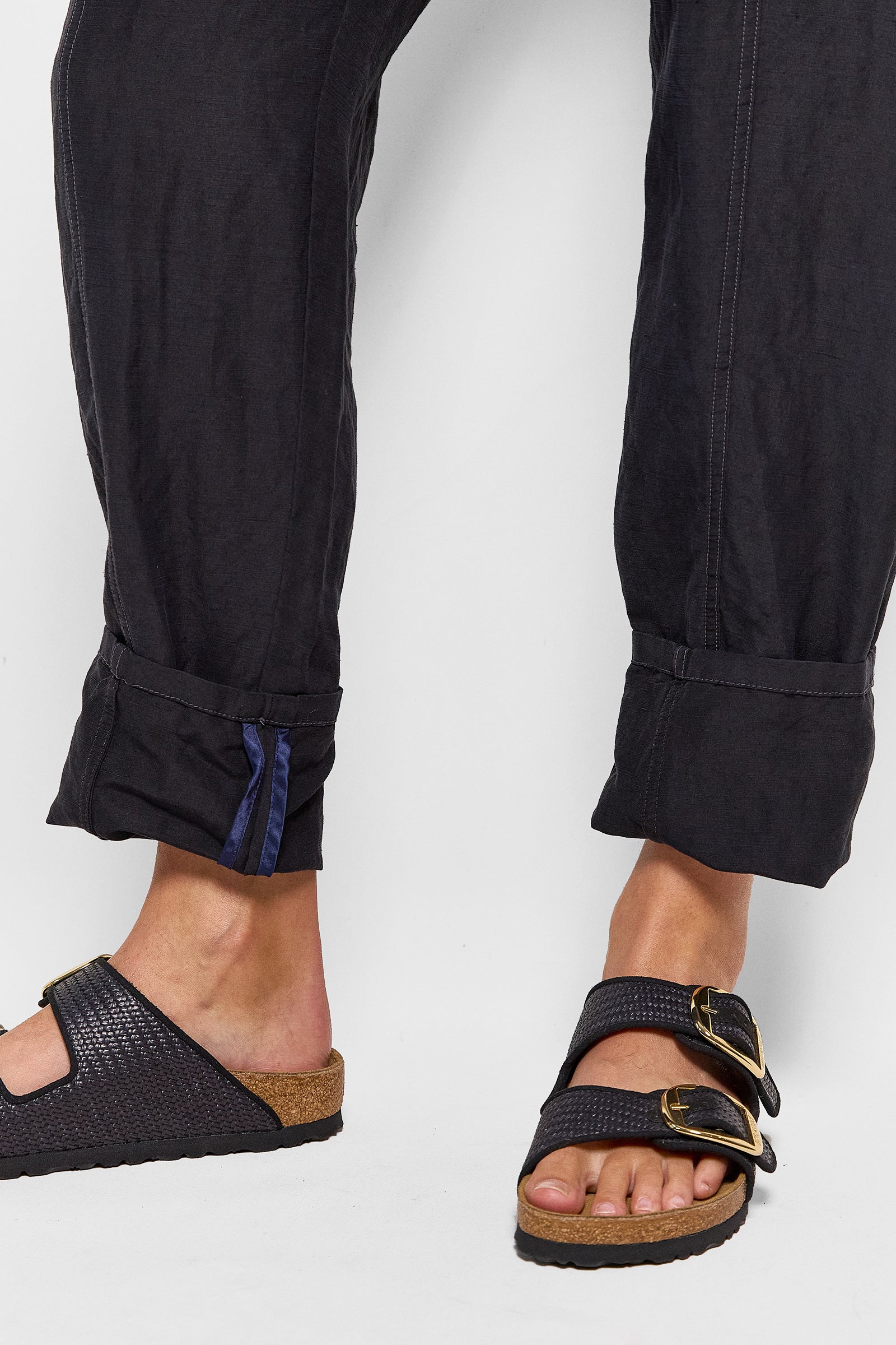 our best selling isak pant featured in a beautiful, lightweight blend of silk and linen. these unisex pants featuring deep pockets, rivets, a flat front waistband that opens up on one side & an elastic back. supremely comfortable in fit & tapered slightly at the ankle. wear them full length or roll the hem. true to size. size up for a baggy fit. size down for a slim fit.