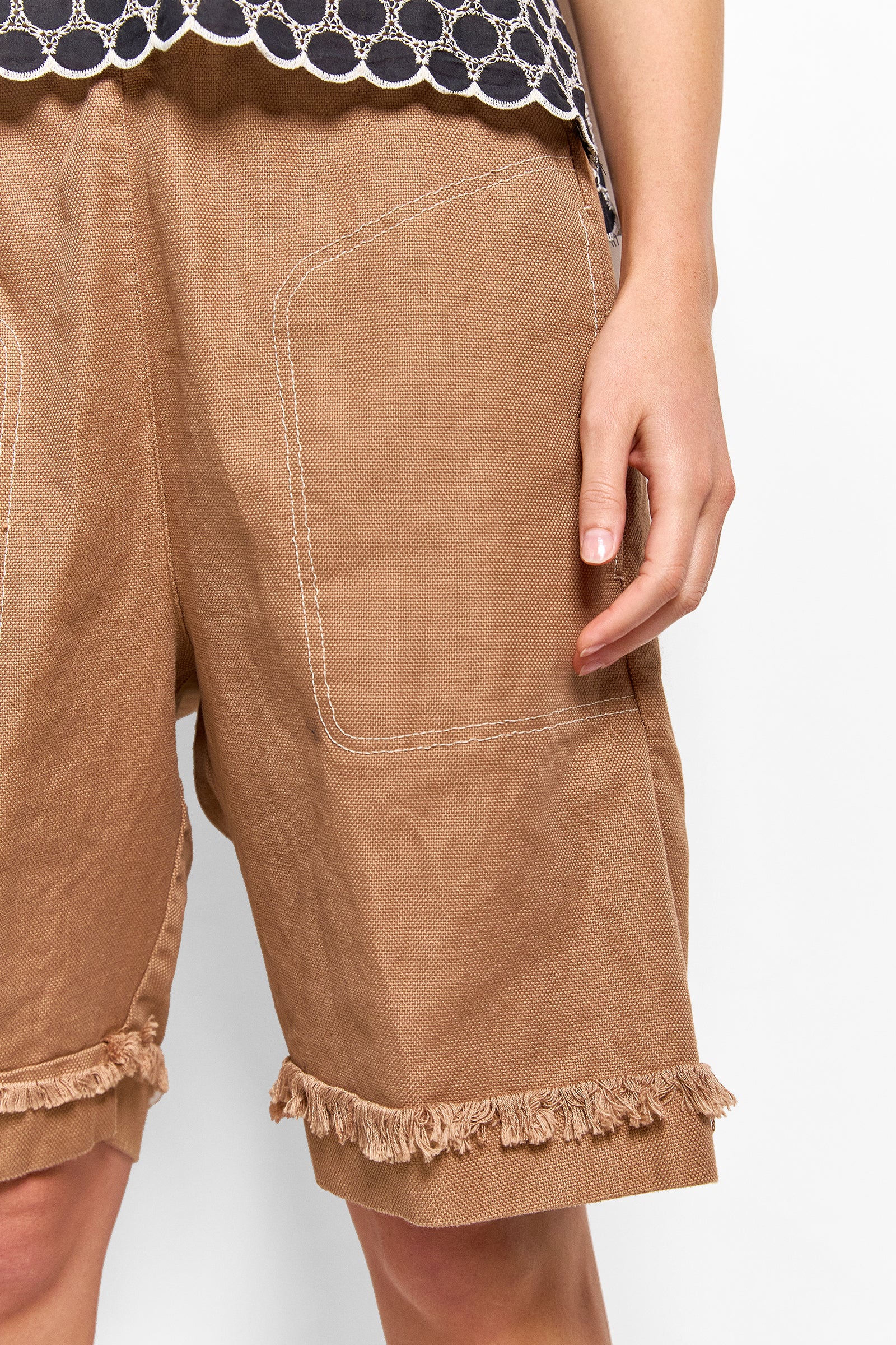 the kooler short. designed to keep you cooler in the heat and cooler in general. these shorts are made of a linen/cotton combo and go through a special wash to give them their soft finish. elastic waist and fringed hems. unisex style, size up for a men's fit. true to size for women.
