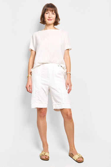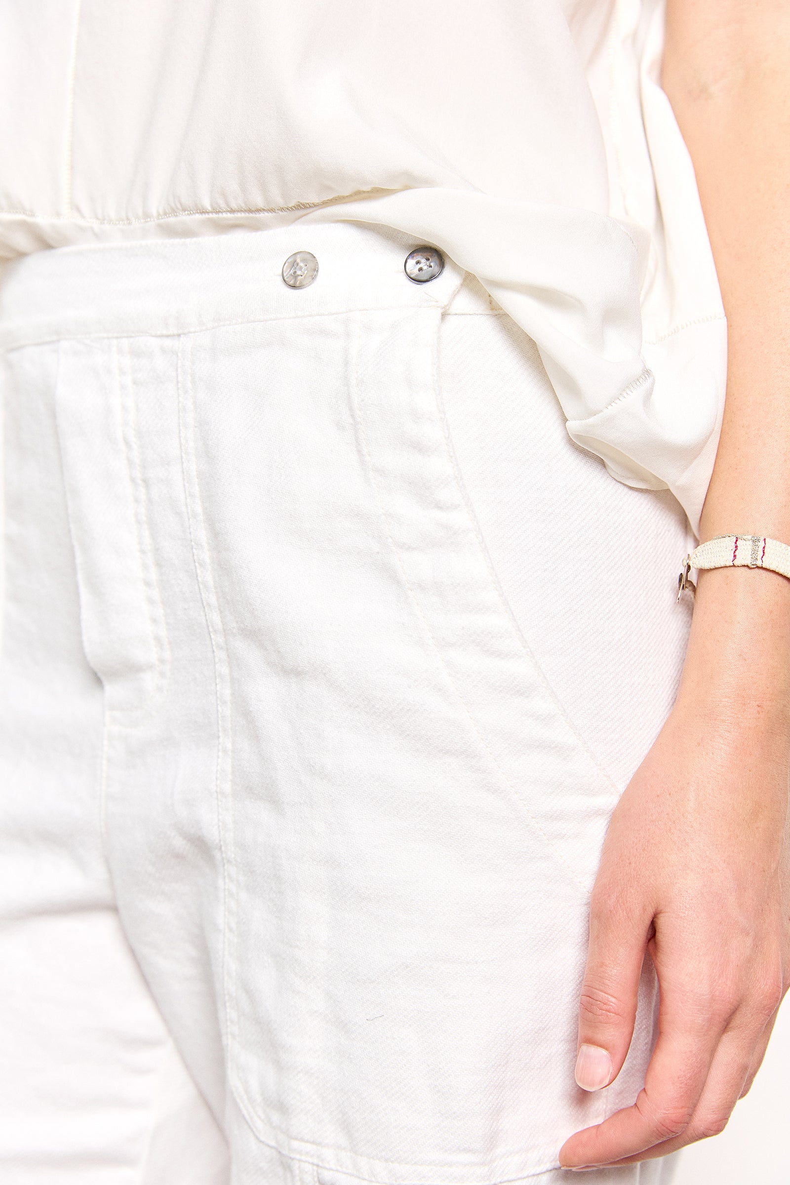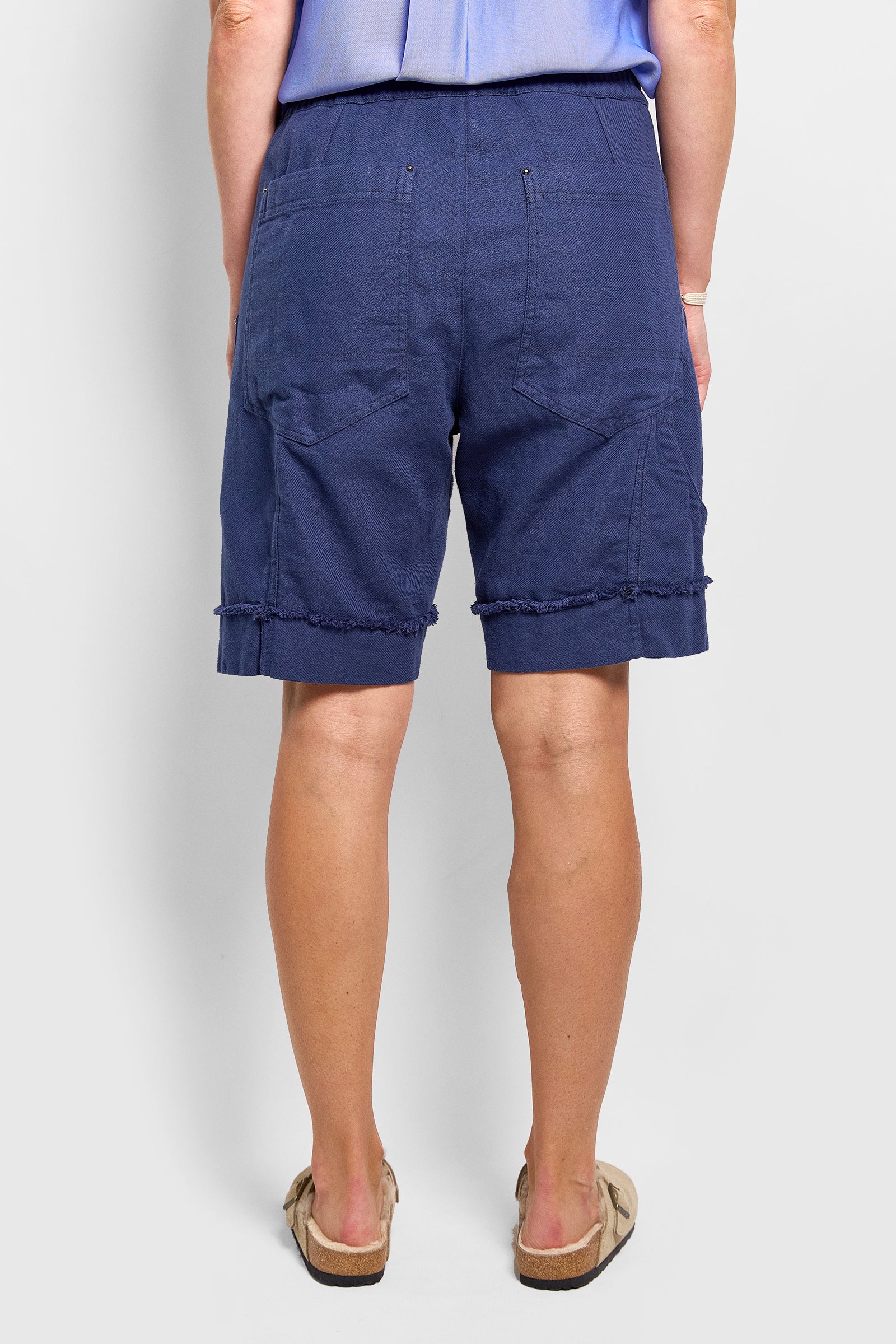 a carpenter short cut from soft cotton–hemp twill. designed with multiple utility pockets and reinforced with thick, twin-needle topstitching. finished with rivet studs for durability. the flat front waistband opens through the pocket, while elastic at the back provides added comfort. true to size.